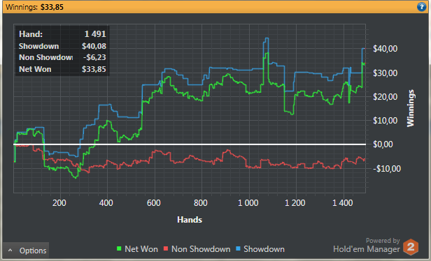 SB: $6.35 - VPIP: 95, PFR: 55, 3B: 10, AF: 1,4, Hands: 20