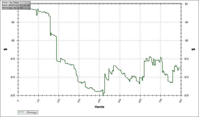 Приятным моментом была только раздача, в которой флопнул стрит и сожрал короткого( стека. Итого -200бб за вчера.