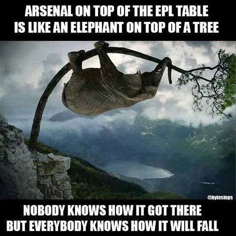 "Арсенал в топе таблицы лиги Ее Величества Подобен слону на верхушке дерева Никто не знает, не знает как он туда попал, но Все знают как он оттуда упадет".