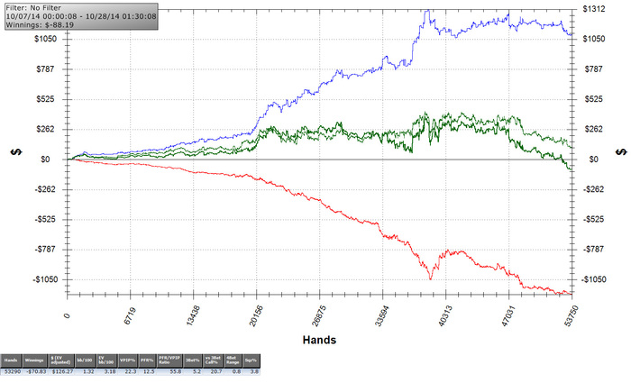 SB: $52.11 - VPIP: 16, PFR: 10, 3B: 4, AF: 1.8, Hands: 297