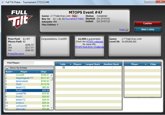 Crock @ 22.10.2014 Кстати в Мтопсе #42 намечается очень хороший ОВЕРЛЕЙ по лимитному холдему, который начинается уже через 25 минут!