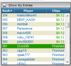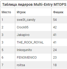 Эх, это жесть... несколько секунд не хватило для того, чтобы все 4 входа протащить в ИТМ в Ребайник раш покера. В итоге заработано всего 3 очка Jakapivo тоже заработал 3 очка, а вот THE_ROCK_ROYAL заработал 6 очков, и отрывается очень сильно от меня... Это печаль конечно. Осталось всего 7 турниров. Удача конечно не помешает..