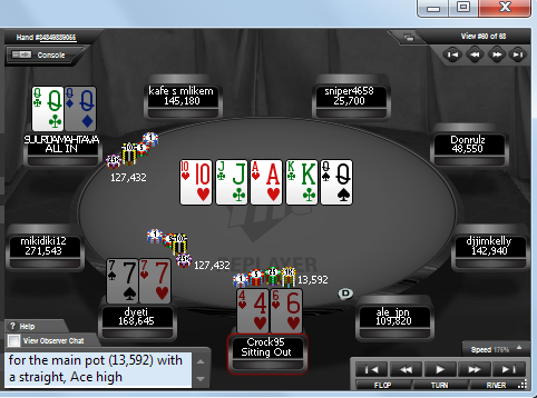 Класс! В шестикарточной(lol, да бывает и такая) омахе Опять я вылетаю на баббле и заработал только 1 очко вместо 3х jakapivo набирает 3 очка естественно не забыв затащить 2 автооллина снизу на баббле The_ROCK_ROJAL не играл, а в принципе зачем?? если можно играть 2 турнира в день и в одном из них обязательно затаскивать 6 очков, даже не играя на ИТМ? 2 THE_ROCK_ROYAL 38 3 Jakaivo 35 3 Crock95 34