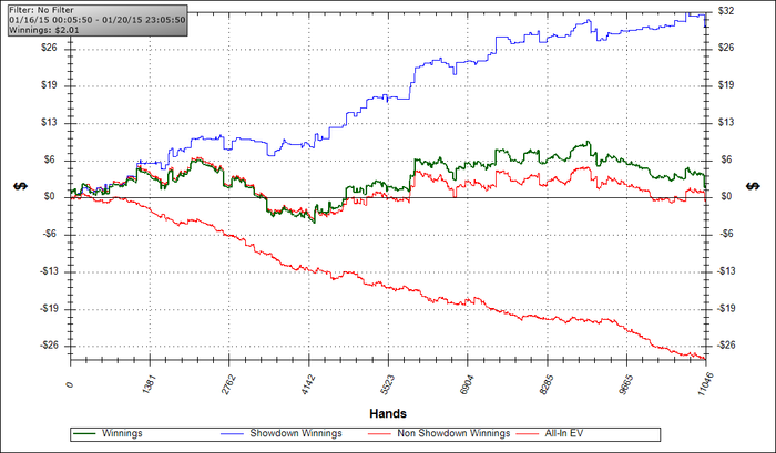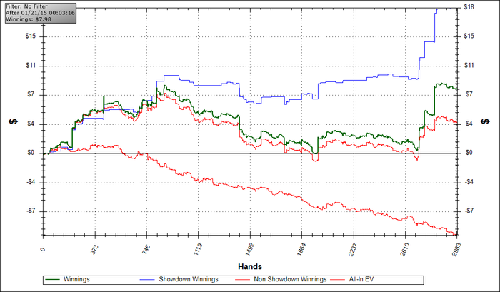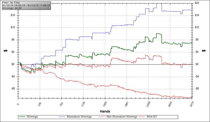 На этой раздаче я закончил сегодняшнюю сессию, результат этой раздачи наглядно виден в конце графика))