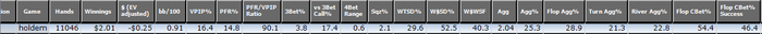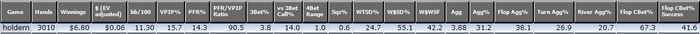 Сегодня, поиграв хоть и немного, я сыграл в плюс. Я конечно рад, но не сильно, т.к. удача явно была на моей стороне. Но статы немного поменялись, впип/пфр вернулся на нормальный уровень, и цбет по совету beerMan'a я увеличил, думаю это повлияло на винрейт, спасибо тебе!)) а вот с 3бетом я переборщил похоже) Собственно вот так: