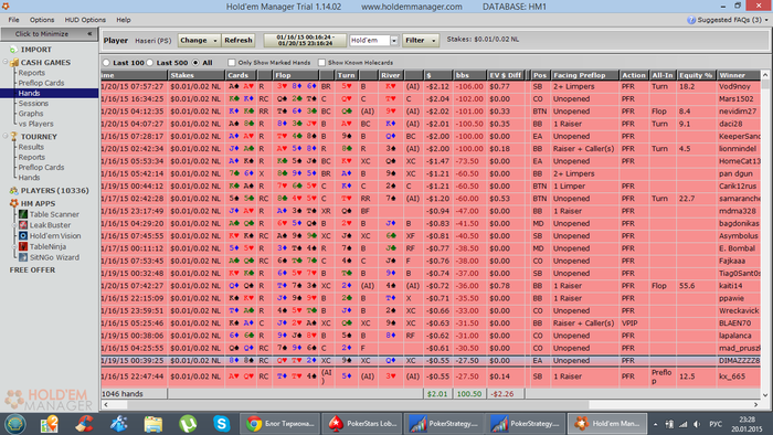Наконец то я выздоровел и вчера-сегодня (пока болел, правда, тоже сыграл чуть) немного залил банкролл покатал. Если честно, то мне кажется, что я необучаем. Такое бывает вообще? уже больше месяца игры в ноль или микро минус меня угнетает. Чтобы не делал, всегда в ноль. В общем результат этих дней: