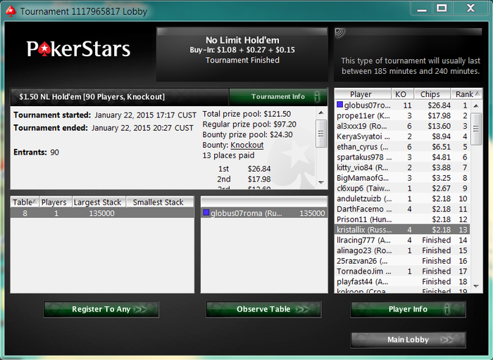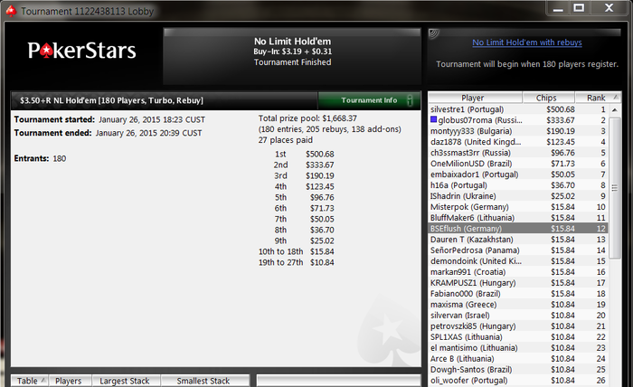 T#1118533713 - Материально пострадал, зачислено $0.35 ($5.00 бай ин минус $4.65 приз)