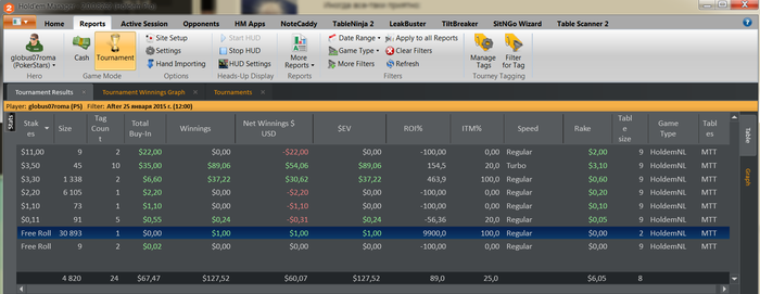 Так как мы высоко ценим Вас как нашего игрока, мы зачислил на Ваш счет сумму в $11.05 за все вышеперечисленные турниры, которые отмечены как "был понесен ущерб".