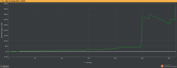 З.Ы. Кто знает, какого черта по графику у меня профит 416$, а в кассе 379? HM2 же вроде учитывает рейк?
