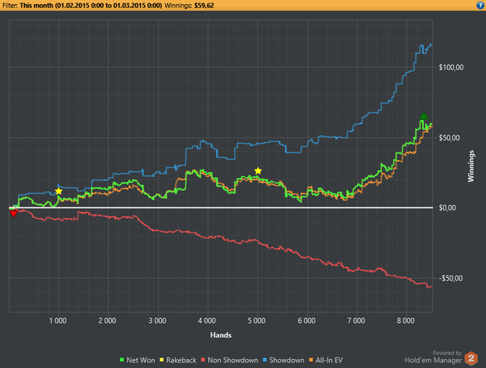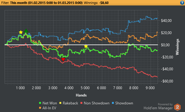 поправил игру в 3бет потах и сам 3бет. Работаю над фолдами на кбеты IP.OOP. решил играть 2-3 сессий по 4к рук и по 4 стола. в первой сессий поймал ап 3к рук сегодня откатал 4к рук, поймал стрит-флеш пиковый и пошло поехало