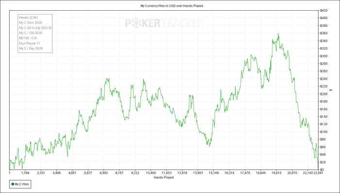 Не сказать, что я удивлен, в покере уже не первый день, к такому говну привык. Но с пика -12 закупок, неприятно. Самое главное ни одной тильтовой раздачи, был предельно сконцентрирован. Выложу три самых крупных проигрыша.