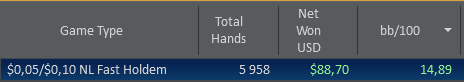 Poker Stars, $0.05/$0.10 No Limit Hold'em Cash, 6 Players