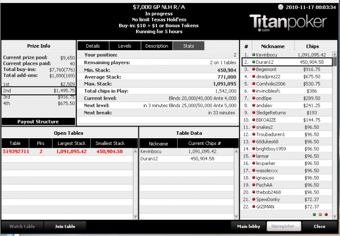 Прошедшия неделя преподнисла вот такие вот результаты. В обоих турнирах 2-ое место, когда оставались 1v1 никак не складывалось, первый раз попал в ,во втором с выставился на низком борде, опу доехало на ривере его 5%.