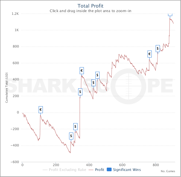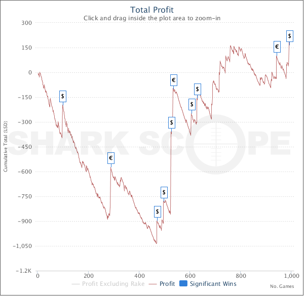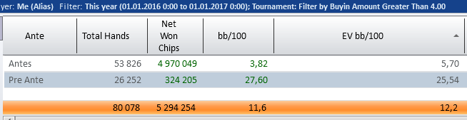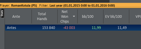 Результат за год смешной, что-то около 900 долларов с учётом всех бонусов и рейкбэка. За год я потратил на покер 2350 часов. Выходит мой доход 38 центов в час =)