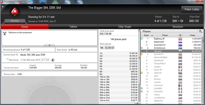 PokerStars No-Limit Hold'em, 11 Tournament, 15,000/30,000 Blinds 3,750 Ante (8 handed) - PokerStars Converter Tool from