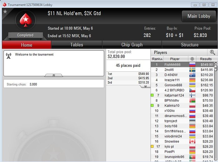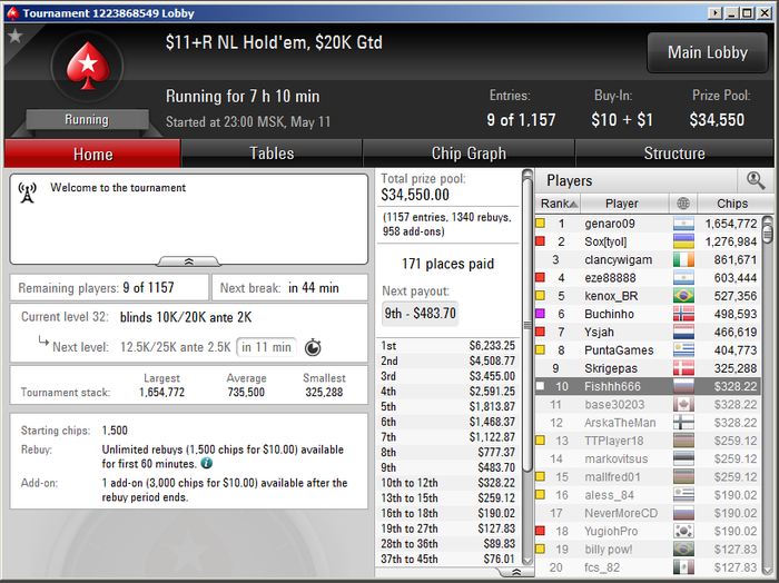 много рук я 3бетил, даже 4бет в холодную ставил, стол был адекватный в принципе, кроме одного рекреационного игрока, который очень любил блефовать, но почему-то слабым его игру не могу назвать, он понимал, что происходит за столом, только был чересчур отмороженным) в-общем первые часы игры, я крутился около начального стэка, затем начался провал, просто не было карты, очень много фолдил и пытался на имидже периодически 3бетить в блеф, но и там умудрялся вляпываться в доминации. к концу игрового дня у меня стэк колбасило от 17 до 35ББ. выиграл выставление АА > 88 на 17ББ. затем сделал не очень удачный сквиз с 97с и контбет на флопе АJ3. и после этого у меня оставалось 25ББ, адекватный чел, хороший регуляр открылся, я его 3бетнул с JJ получил колл от рекреационного иггрока, как он потом сказал с 77 или 55, точно не помню. и прилетел пуш в холодную от чела, которого недавно пересадили, но впечатление успел оставить, что он в адеквате. оупенрейзер фолд, а мне с моим стэком ничего не оставалось как заколлить пуш. увидел одну из лучших рук, которая там могла быть ТТ еще надеялся увидеть АК, хуже как я понимал он не запушит. в-общем борд T9822 и bb high rollers)