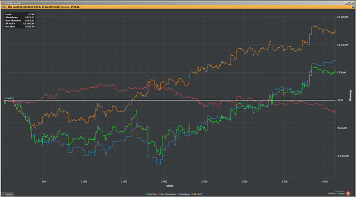 Даж не знаю с чего и начать...добирались на турнир с приключениями, в результате зарегились только в начале 4го уровня. карта шла норм, 3бетил часто, сыграл интересную раздачу с очень тайтовым игроком, но про это я тогда только догадывался. он открылся с УТГ я 3бетнул с АК все фолд он проколлил. флоп АВ3, он чек, я кбет он минрейз. мне это уже сразу все не понравилось, но выбросить я не мог, так как лежало ФД. я проколлил, на терн вышел К, появилось еще одно ФД, он поставил около пол пота, я решил просто заколлить и на бланковых риверах, сыграть рейз или колл по обстоятельствам. на ривере вышел полный бланк, он поставил около 40% пота, и я решил, что надо пытатся добирать с 2-ух пар хуже и на пуш выбрасывать. зарейзил в 2,5х, он инста колл и показал сет валетов. если бы я тогда знал как он играет, то мне надо бы просто фолдить на флопе, потому что он очень нитовый был, и играл максимально аккуратно...