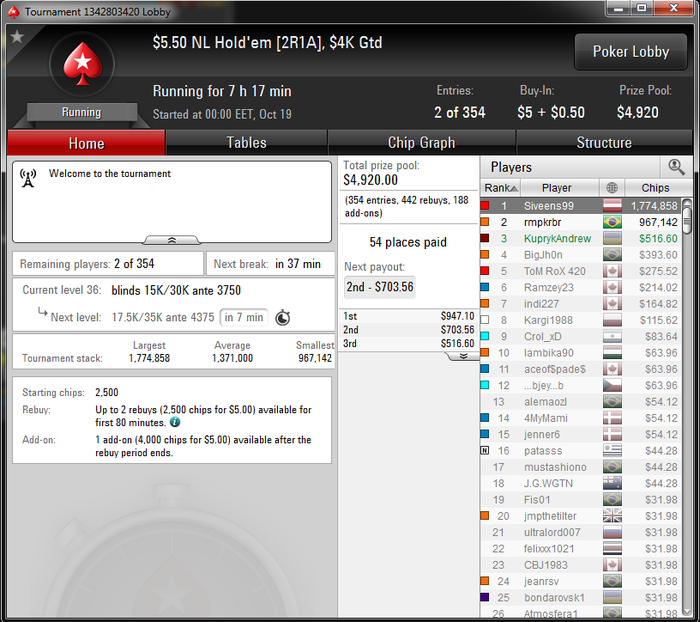 Андрюха соберись а покер же все равно не бросишь ведь тебе игра даже на аби 10-15 дает уровень жизни который в нашей стране мало что может обеспечить)) так что успокойся и садись катать
