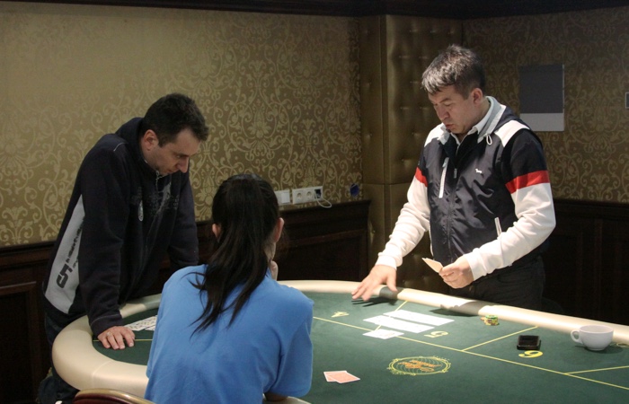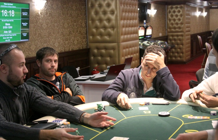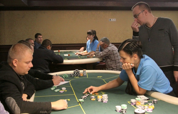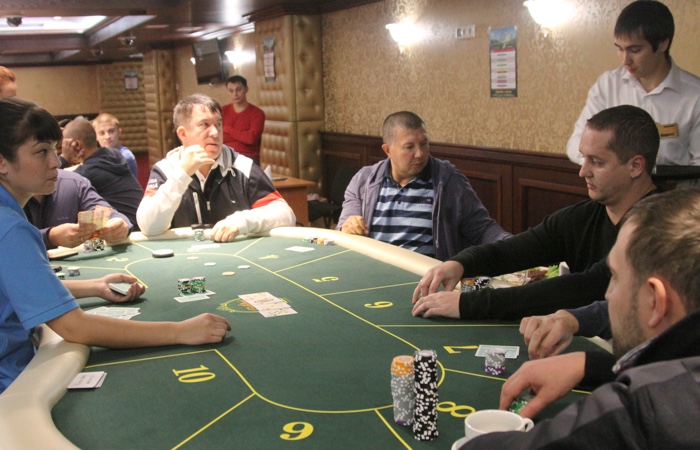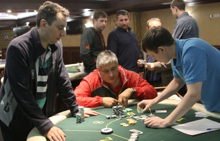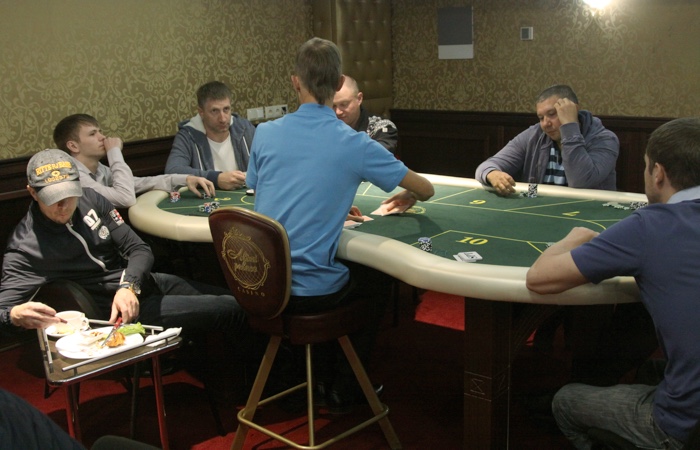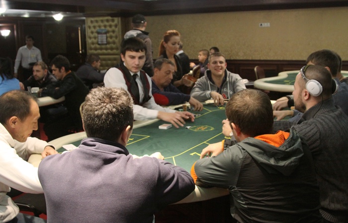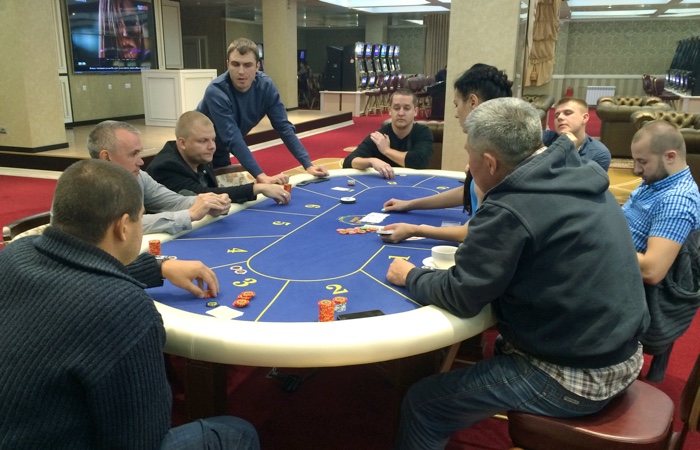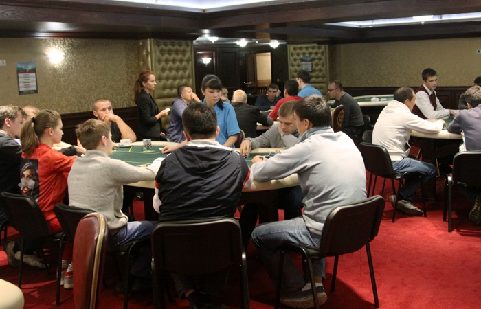 В игре - три полных стола. Добавится еще несколько игроков, - и откроют четвертый стол. Новые участники потихоньку прибывают в покерный клуб...