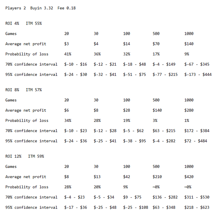 9. Не имея наигрыша хоть в несколько тысяч рук, свой РОИ надо оценивать поскромнее. В моём случае, думаю можна начать с 4%, а дистанция всё раздожит по свои местам.
