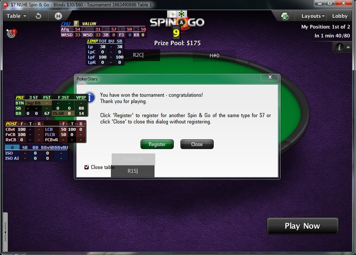 PokerStars - $6.51+$0.49|40/80 NL (3 max) - Holdem - 2 playersHand converted by PokerTracker 4inflxs (SB): 14.88 BBGhettogoat69 (BB): 3.88 BB (VPIP: 62.50, PFR: 17.24, 3Bet Preflop: 8.33, Hands: 32)