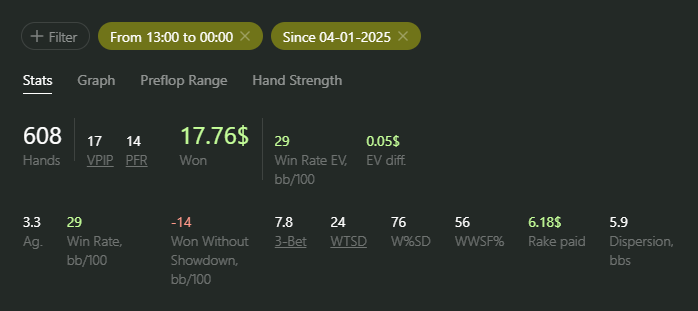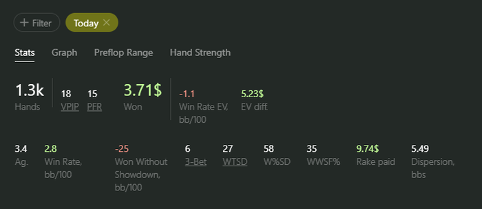 Сегодня я думаю показал А+ игру, учитывая что были куллеры КК<AA JJ<TT