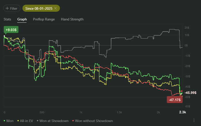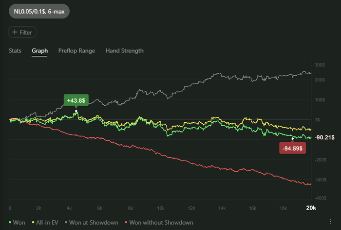 Ужасно сдавали, КК<AQo, по кассе +3, по х2н минус