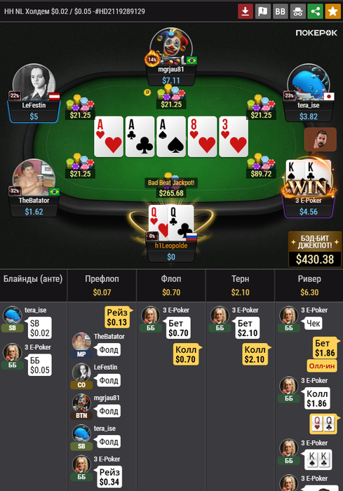 Чёт сегодня реги перебрали, с 72с отбивали на 4бет, 3бет с А3о и рейзили тёрн с 3ми ПП