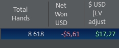 катал 3 дня, статов не набралось) да даже если и наберётся, сколько там рук 200-300 для кеша это не о чём. А учитывая пул игроков на нл2 зуме. за всю жизнь их не наберёшь. Смотрел стрим рега зум 500, у него на оппов по 2-4к рук. НО, там поле человек 30-40, и он для такой выборки откатал 120к рук. Теперь представь для нл2 сколько чего будет набираться