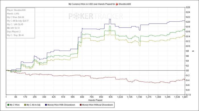 SB: 133 BB (VPIP: 73.68, PFR: 52.63, 3Bet Preflop: 16.67, Hands: 38)