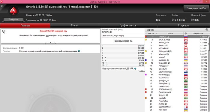 5436190 @ 16.2.2017 но и регов в турнирах подороже естественно больше, отсюда и проблемы на поздних стадиях турнира !