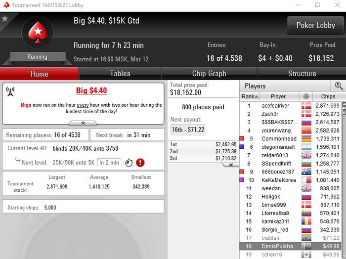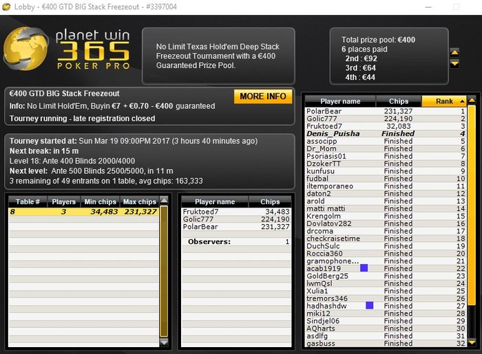 "Planeta" пока так себе идёт, очередной день не так много турниров из-за того, что старзы ещё подрубаю, а моник пока ещё не приобрёл( не комфортно с наложением играть)