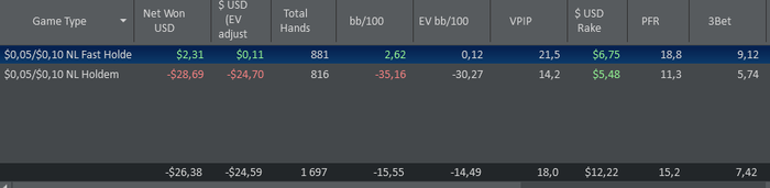 Hero (SB): $22.03 - VPIP: 16, PFR: 14, 3B: 10, AF: 3,2, Hands: 21676BB: $10.00 - VPIP: 0, PFR: 0, 3B: 0, AF: 0,0, Hands: 1