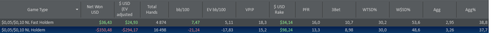 UTG: $10.88 - VPIP: 27, PFR: 17, 3B: 5, AF: 1,2, Hands: 1104