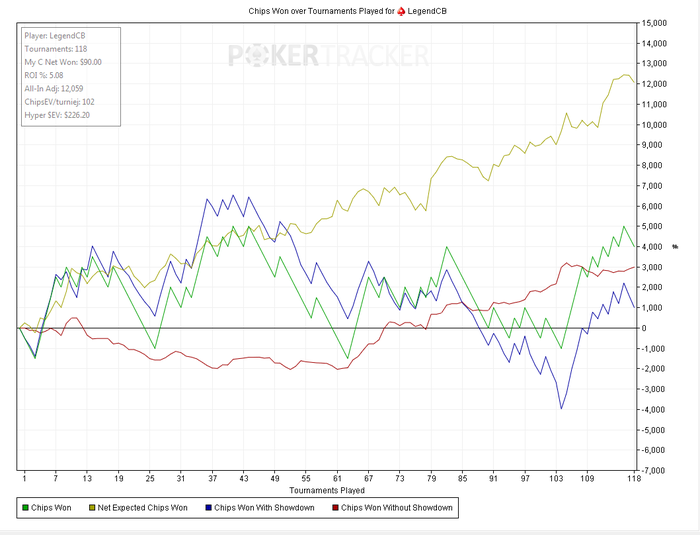 В этом месяце откатал всего 44 часа, вышел 17 бакс\час впервые посмотрел этот стат. Удивился. Вроде месяц не такой удачный, кулерило не по детски, что на префлопе, что на постфлопе. Понял одну вещь, ни кто тебе не поможет пока ты не начнешь сам работать усердно над своей игрой, над дисциплиной, над психологией. И чем быстрее это поймешь, тем лучше. И работать над игрой не раз в неделю. А именно каждый день перед сессией например смотреть свою предыдущую сессию желательно с софтом, и не только самые минусовые раздачи, а все минусовые раздачи, вплоть до -50, сначала кажется это капец долго и нудно. Но как только начинаешь то сразу втягиваешься и после этого сессия проходит максимально комфортно, хоть я в этом месяце и не показал хорошего результата но за то я доволен своей игрой. 7-ки 700 туров 68 чип ев(график лень грузить 15-ки: