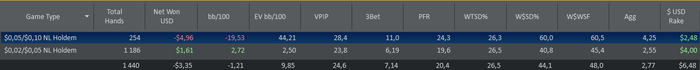 Cтолов 6; Мини сессий 3; Рук: 1440; Время = 150 мин; Результат = -3,35$ ; bb/100 = -1,21; Моя оценка = 5 с 10.