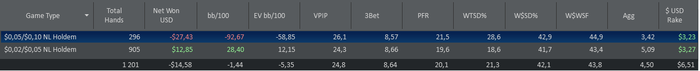 5. 14:40-15:40=60мин | 591 руки | ...-25,63.. | -39,04 | 5 с 10 | Comment: ПЛОТНЕЙШИЙ ЖЕСТОЧАЩИЙ ДАУН… ЭТО ПОЛНЫЙ ТРЕШ… Слетел с 3 столов НЛ10 до 2 столов… 4 на 2… Texника: Норм, без грубых…; Rating: 5 с 10 . Психология: Норм, на уровне… ; Rating: 5 с 10 .