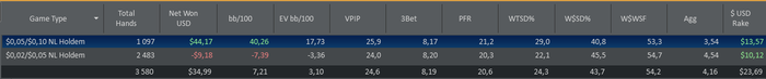№| ......Time ..............|Hands..|.Net Won $| bb/100 | Rating |
