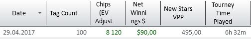 Сегодня очень хорошо поиграл, 96 фишек/турнир за последние 100 турниров.