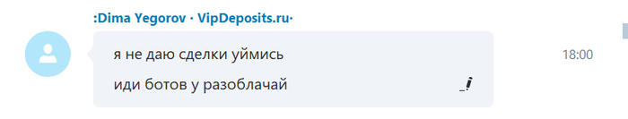 Всегда интересно наблюдать как возможные финансовые потери меняют поведение людей. DimaYegorov, правильно ли я тебя понимаю, ты помогал со сделками всего двум своим друзьям, но вместо того чтобы сообщить об этом сообществу накатал какую то простыню не пойми чего аж два раза?
