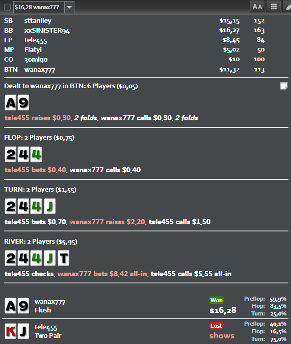 LakimAAn @ 10.11.2017 BAHAKC, 89s лично по мне плохо сыграл. По терну коллим пуш в 4бет поте с 89? =) там много дров по терну,но 4бет поте AJ TT QQ+ Отдавать стек ? ну такое.. но главное win