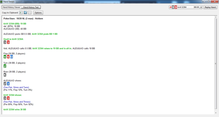 3aaCCCP, изи пуш в 1 ой, ну минимум потбет, 1/2 ривером- фишная игра , во второй тоже пуш, я вряд ли тут выкидываю фул и тп, ну по крайней мере мало кто выкинет, и не колю пот с трешом и откровенно слабой рукой, в 3 ей я за донк, в такой ривер я не блефую, да и спр такой, что фэ нет, а колоть буду довольно широко, в целом- это очень слабая игра, объективно, если в предыдущих постах, стандартно трипс разыграли и доехали, я согласился, что так и есть, и сыграно ок, то тут я уверенно говорю, игра- слабая, оппонент не понимает мои диапозоны и не добирает катастрофично, не удивительно, что 7 его предел, короче пометил фиолетовым