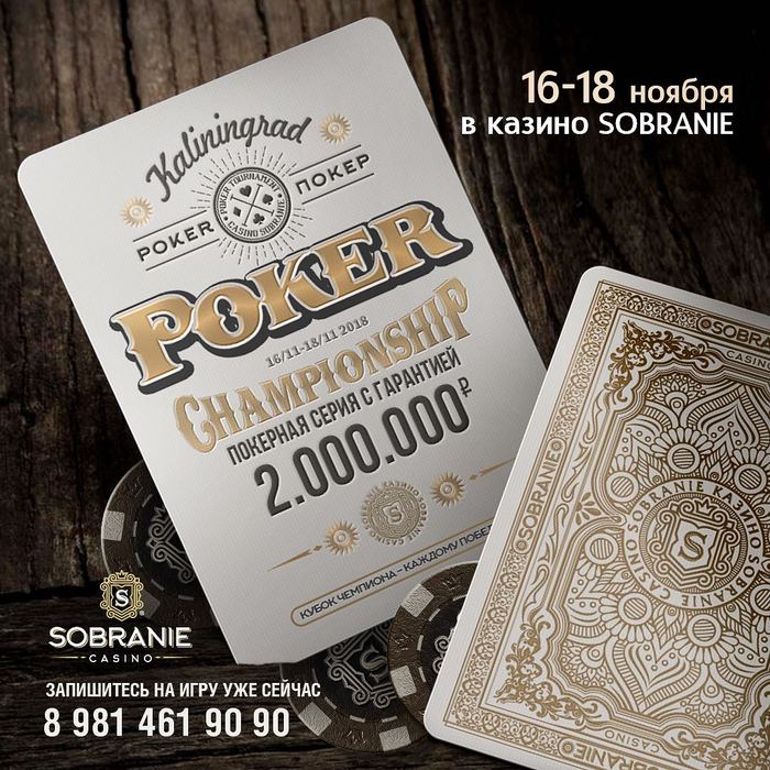 Дорогие друзья! Мы рады сообщить Вам, что с 16 по 18 ноября пройдёт уже 3й по счёту покерный чемпионат Калининградской области!👏🏻 На это раз общая гарантия увеличена до 2️⃣.0️⃣0️⃣0️⃣.0️⃣0️⃣0️⃣ рублей. 📲Звоните, запись уже открыта!