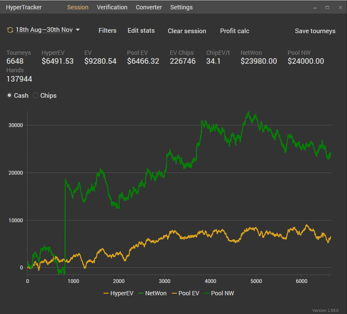 С фишами тоже есть прогресс, поднял до +4.44, но это всё так же относительно немного, буду надеяться что это осенний стрик украл несколько десятых фишек отсюда. Буду продолжать много работать в этом направление и в улучшении 3макса - как обычно в покере надо постоянно что-то ковырять изучать чтобы показывать хорошие винрейты, и чтобы изменения от старзов максимально обходили стороной :(