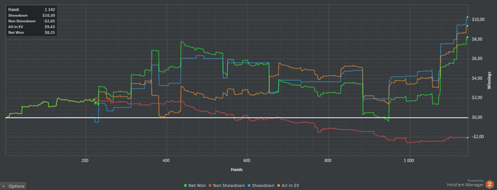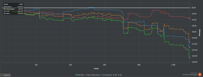 Беру перерыв в покере на неопределенный срок, нет мотивации катать. Когда такие недоборы на нл2, который ты катаешь уже год, а также неспособность подняться самостоятельно хотя бы на лимит выше, заставляет задуматься, что возможно это не твое. БР около 25$, околонулевый винрейт за все время игры, год потраченный офк.