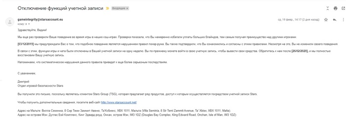luckysiski @ 6.2.2020 Дима забанен на год за то, что использовал скрипт в других румах с параллельно запущенными старзами. В п50 говорили, что старзы дали разрешение на такое, но в итоге по шапке многим прилетело и за рамками п50.