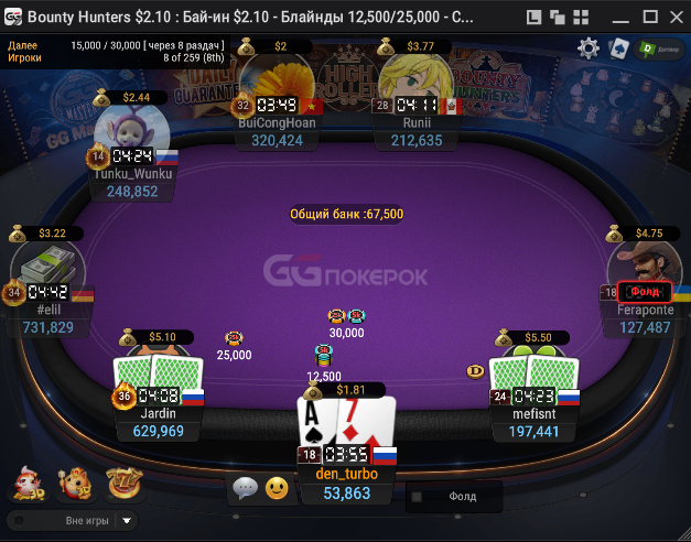 "Third result" - Финалка 2,1$ Bounty Hunters на PokerOK