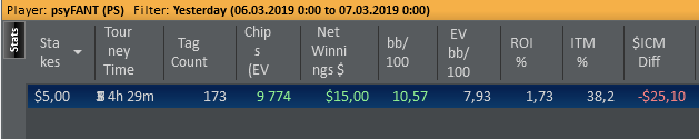 700 банкролла пойду на семёрки (цифра примерная, ориентир на максимально низкую вероятность даунстрика и на день недели).. Про $15 загадывать шибко рано, туда надо явно больше 100 BI.. Имею ввиду банкролл в кассе + возможность моментального депозита, хотя депозитить я сейчас не умею ))