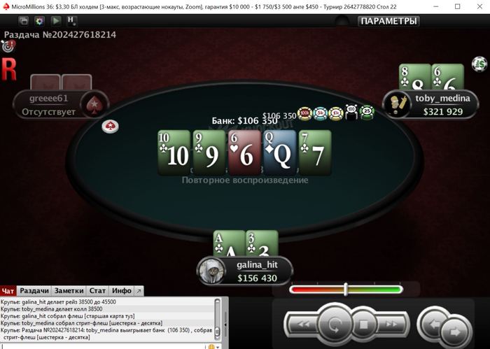 Gvoroal, наверное он просто не сообразил, что у него стрит-флеш, хотя это было уже топ-150(из4400). В ММ что не раздача, так мультипот) трибеты не играют(3-4 игрока все равно в банк залетит)!
