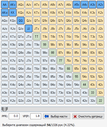 Если посчитать, то получается, что в его диапазон чек-рейза входит 2% рук